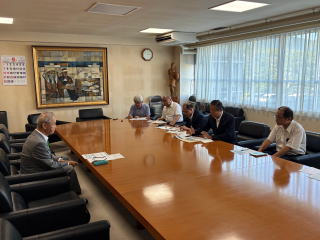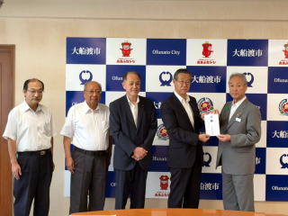 9月2日、大船渡市の大規模林野火災から半年が経過する中、日本共産党県議団と大船渡市議団は、渕上清市長に党中央委員会に寄せられた災害見舞金200万円を届け、復旧・復興の状況を聞きました。