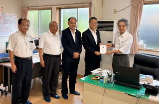 綾里漁協では、和田豊太郎組合長、川上淳参事にご対応いただき、2度目となる義援金を届けました。和田組合長からは「またご支援いただき、全国のみなさんが(募金活動に)頑張ってくれていることが目に浮かびます。独自に活用できるお金はありがたい」と感謝の言葉をいただきました。