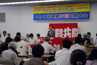 9月6日、いわて労連は盛岡市で第37回定期大会を開催し、80人が参加しました。全労連の香月直之常任幹事、立憲民主党の横沢高徳参院議員(野党共闘)とともに、日本共産党を代表して私も来賓あいさつし、差別と排外主義を許さない国民的共同を呼びかけました。